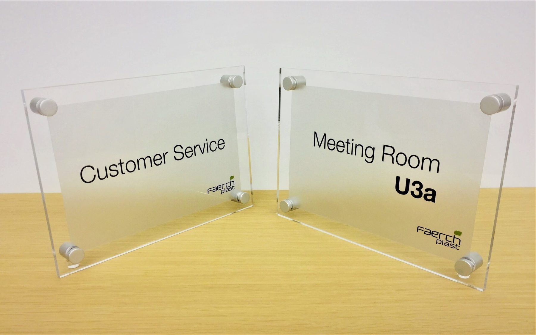 Using the latest technology we manufacture modern looking ‘Glass Effect’ Perspex door signs in a range of sizes perfectly suited for office doors.
